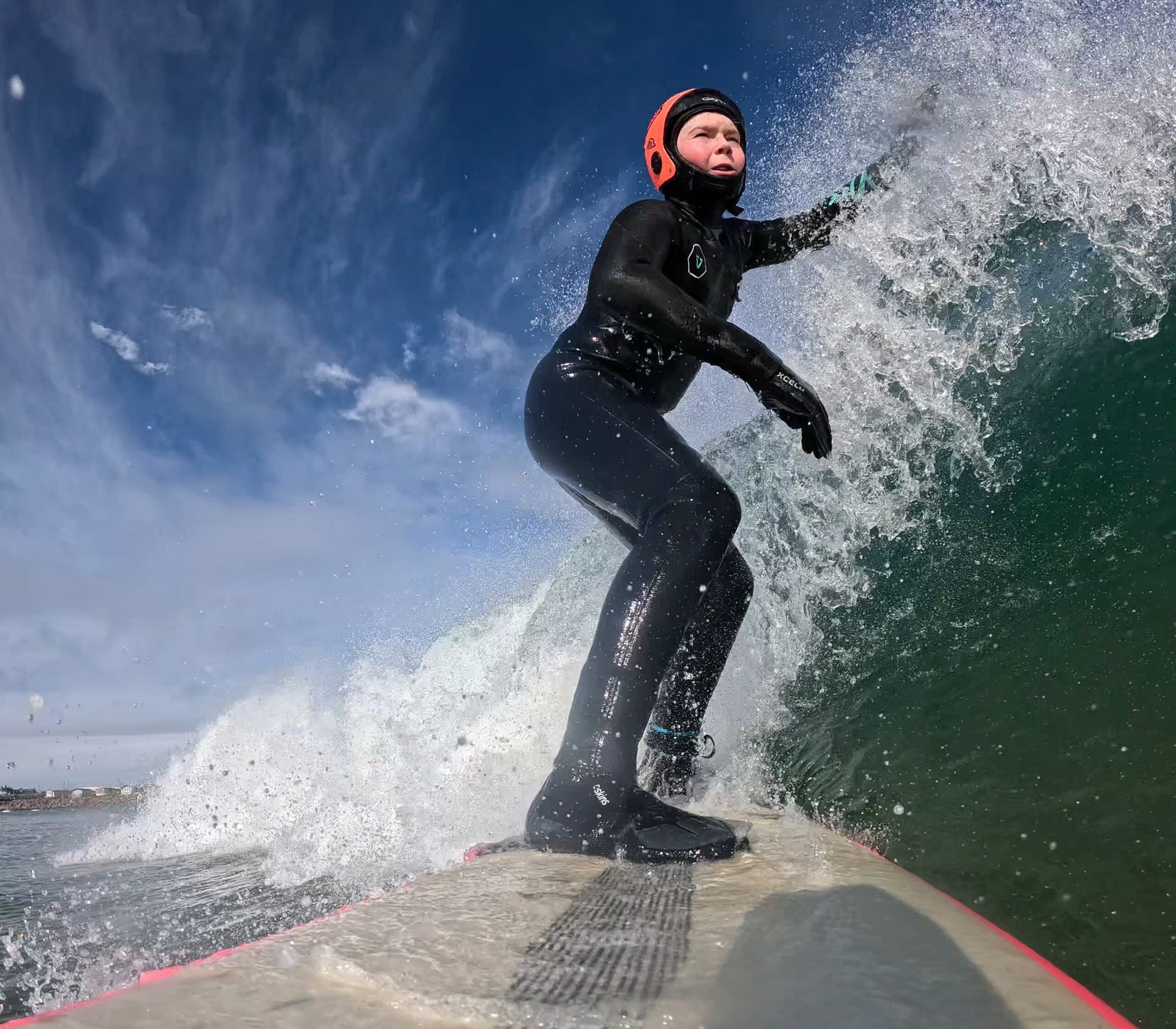 It makes me feel so happy, when you are in the water it makes you feel so calm,, you forget everything else and just surf, i love the sound of the water. i could surf everyday instead of going to school.